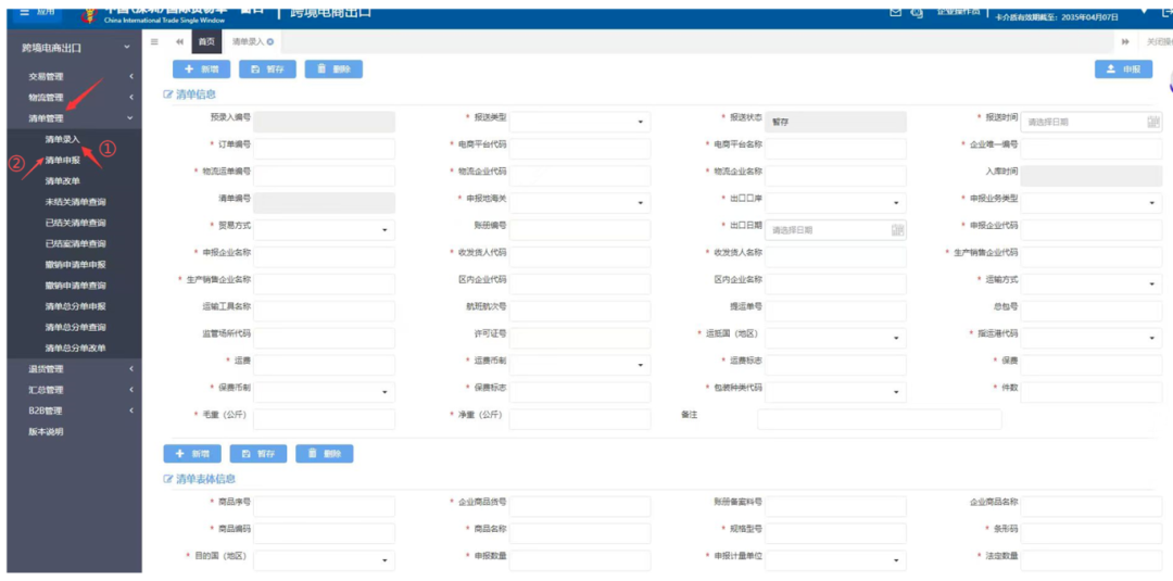 登录后找到【清单管理】,点击【清单录入】,填写页面要求的相关信息后,点击【清单申报】,完成后系统将自动生成订单号