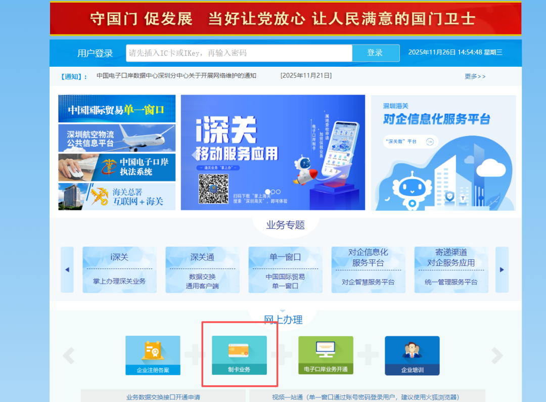点击【制卡业务网上办理】