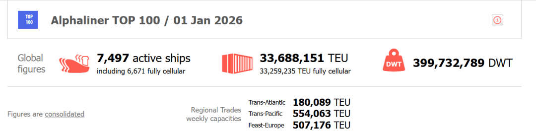 Alphaliner全球运力排行榜(截至2026年1月1日)