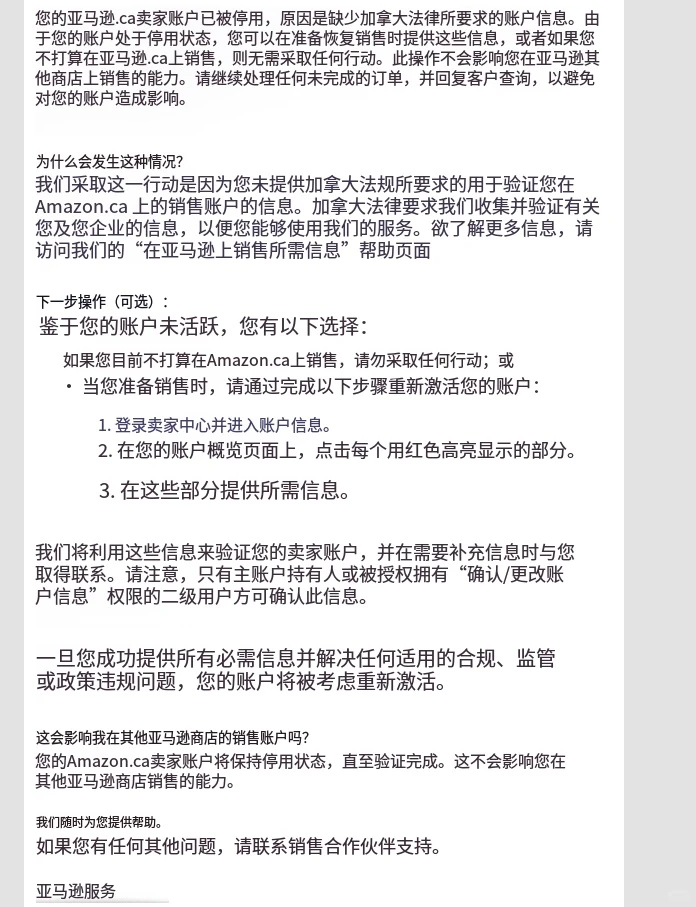 另有卖家表示,其联系到亚马逊账户团队后得到的建议是尽快按要求完成恢复:若确为长期未使用导致停用,提交资料通常可以恢复;同时在多国店铺并行的情况下,也建议尽量处理完相关验证,避免不必要的连带影响。