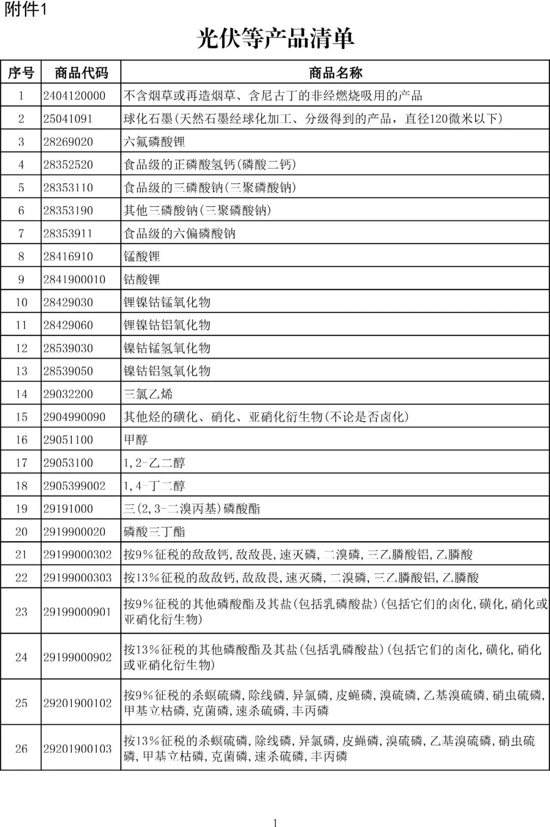 值得注意的是,从实施范围看,退税政策调整涉及的清单显示,受影响的产品除了光伏和电池相关产品外,还包括化学原料及制品(基础化工原料、有机磷类化合物等)、塑料PVC()及聚合物类、厨房用具、陶瓷用品、有机硅、水泥、玻璃制品等相关产品。