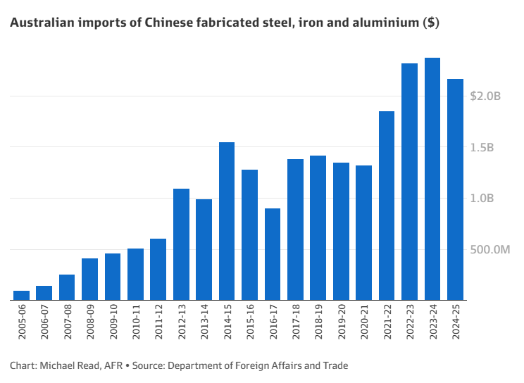 在此背景下,澳大利亚钢铁协会于2025年11月向政府提交紧急贸易保护申请,建议对结构钢进口实施年度配额管理,拟定配额规模约为40万至45万吨,并对超过配额部分征收额外关税。